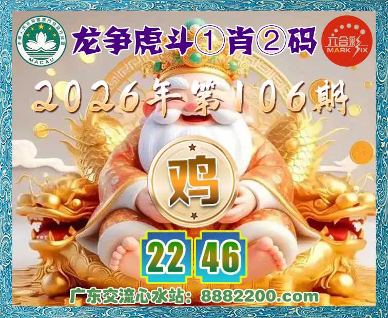 106期:『龙争虎斗』 ①肖②码【鸡】【22.46】开:00准
